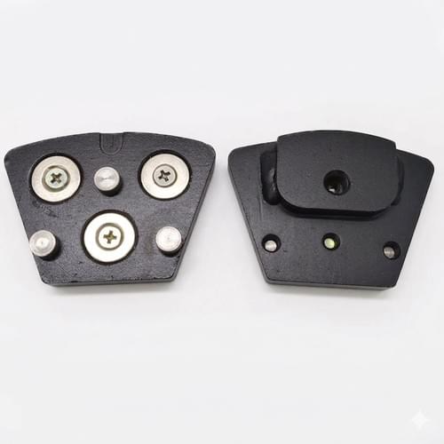 Magnetic adapter for NewGrind and Rhino grinder, designed to use trapezoid diamond grinding tools for concrete floor grinding and surface preparation.