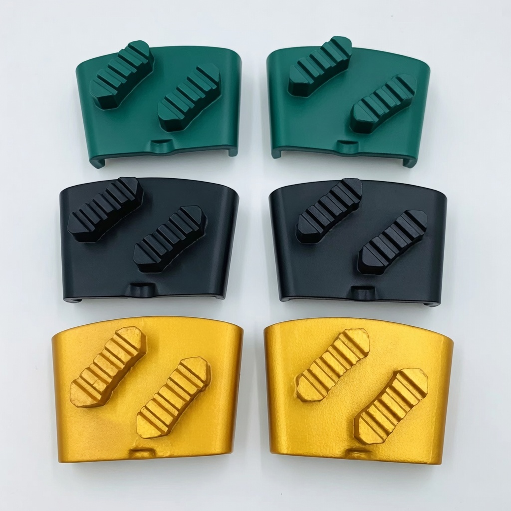 Metal-bond diamond grinding shoes with 3-hole mount for Klindex floor grinders. Choose Segment Size + Grit. Bond is confirmed before dispatch (leave a note: Soft / Medium / Hard).View more details...SelectSelectQuantityComing soon