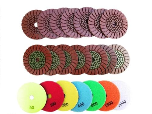 A: Both. The copper-resin hybrid style is commonly used across stone and concrete polishing applications.